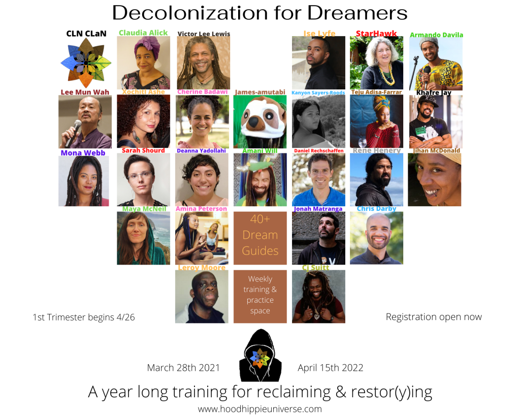 This is an interdisciplinary, multimedia, live and asynchronous, online, year long training. Join us and 40+ Dream Guides come true, on an immersive, year long, transformative journey through Decolonization 4 Dreamers, with a growing CLaN of HoodHippie$ getting free through creativity.